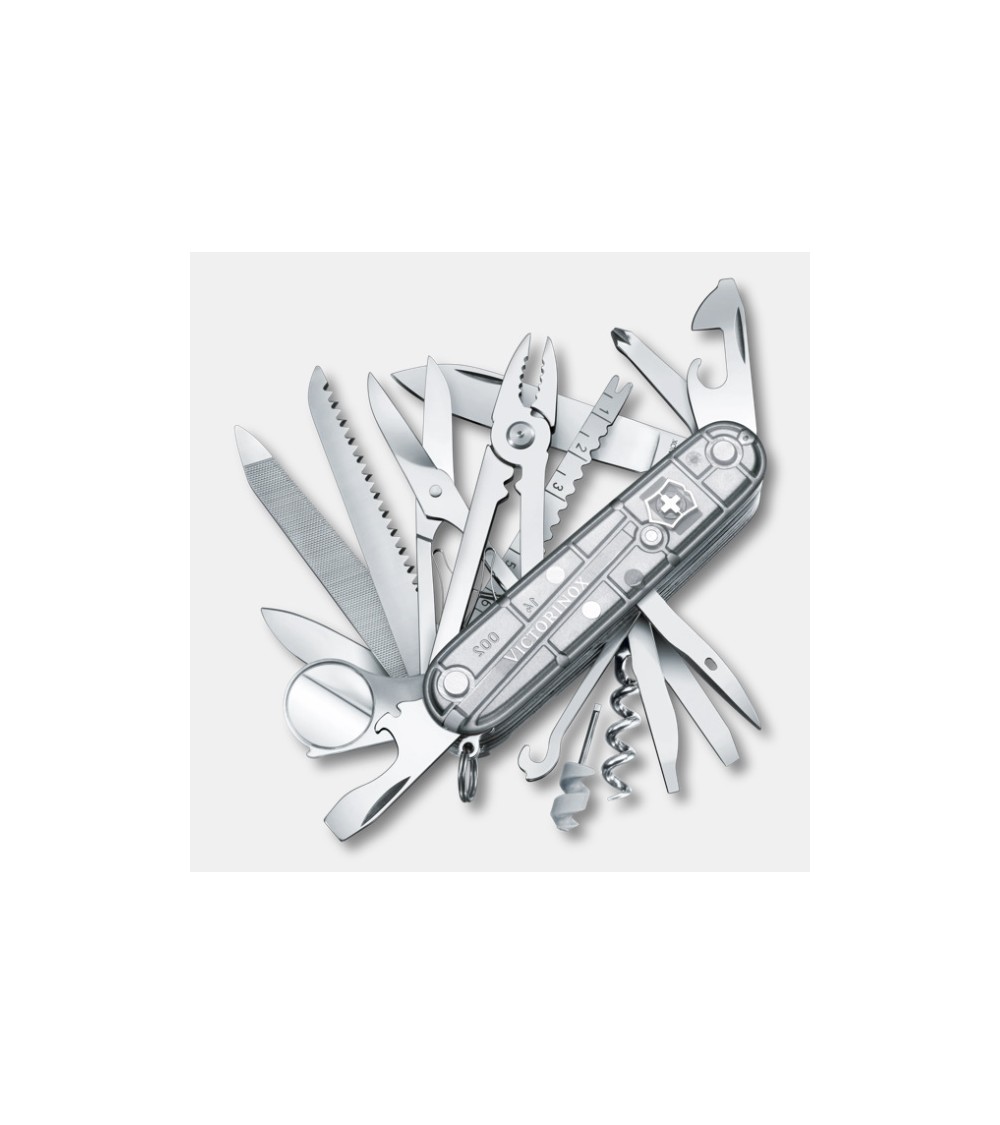 Préparez-vous pour laventure et emportez le Swiss Champ avec vous. Il est toujours prêt à relever de nouveaux défis. Avec ses 31 fonctions et ses côtes argentées transparentes, ce couteau de poche est loutil idéal. Gardez-le en poche pour vos aventures du quotidien et prenez-le avec vous pour explorer la nature sauvage. Avec son tournevis et son tire-bouchon, son cure-dents et ses ciseaux, le Swiss Champ a tout dun athlète.