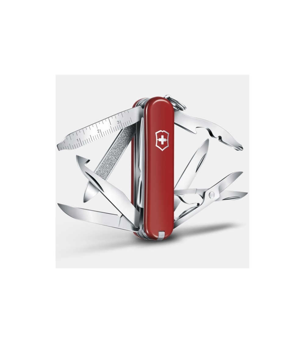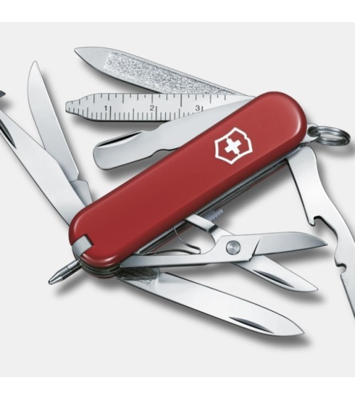 Un petit couteau aux grandes ambitions. Avec non moins de 18 fonctions, ce couteau à la fine silhouette se glisse facilement dans votre poche. Le Mini Champ est le champion des petits couteaux. Il est si léger que vous pourrez le garder sur vous toute la journée sans vous en apercevoir. Le Mini Champ saura se faire tout petit, jusquau jour où vous en aurez besoin et quil sortira le grand jeu.