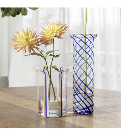 Inspiré des vases archétypaux aux lignes épurées et aux volutes raffinées, ce vase en verre sodocalcique soufflé bouche apporte une touche d'élégance et de fantaisie à n'importe quelle pièce. Les spirales et les rayures ludiques du verre uni soulignent son savoir-faire artisanal, ce qui en fait la pièce idéale pour mettre en valeur vos fleurs préférées.