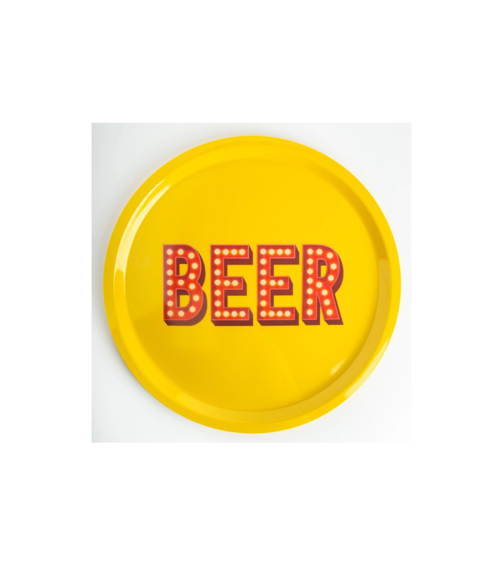 Apportez une dose de bonne humeur à vos soirées avec ce plateau rond au style vintage et plein dénergie. Avec son jaune vif et son lettrage lumineux « BEER », il devient vite la star de vos apéros, barbecues et soirées entre amis. À la fois pratique et déco, il sutilise autant pour servir que comme élément design sur une table ou un bar.