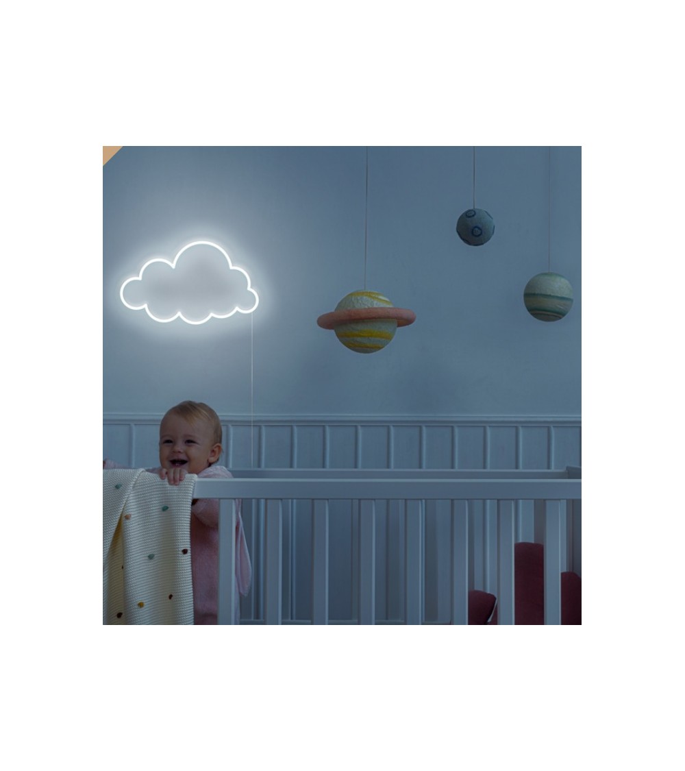 Cette enseigne néon Petit Nuage diffuse une lumière douce et rassurante, idéale pour accompagner les nuits et les rêves des tout-petits.