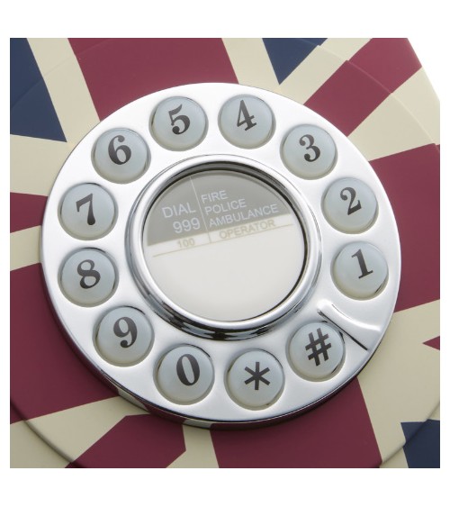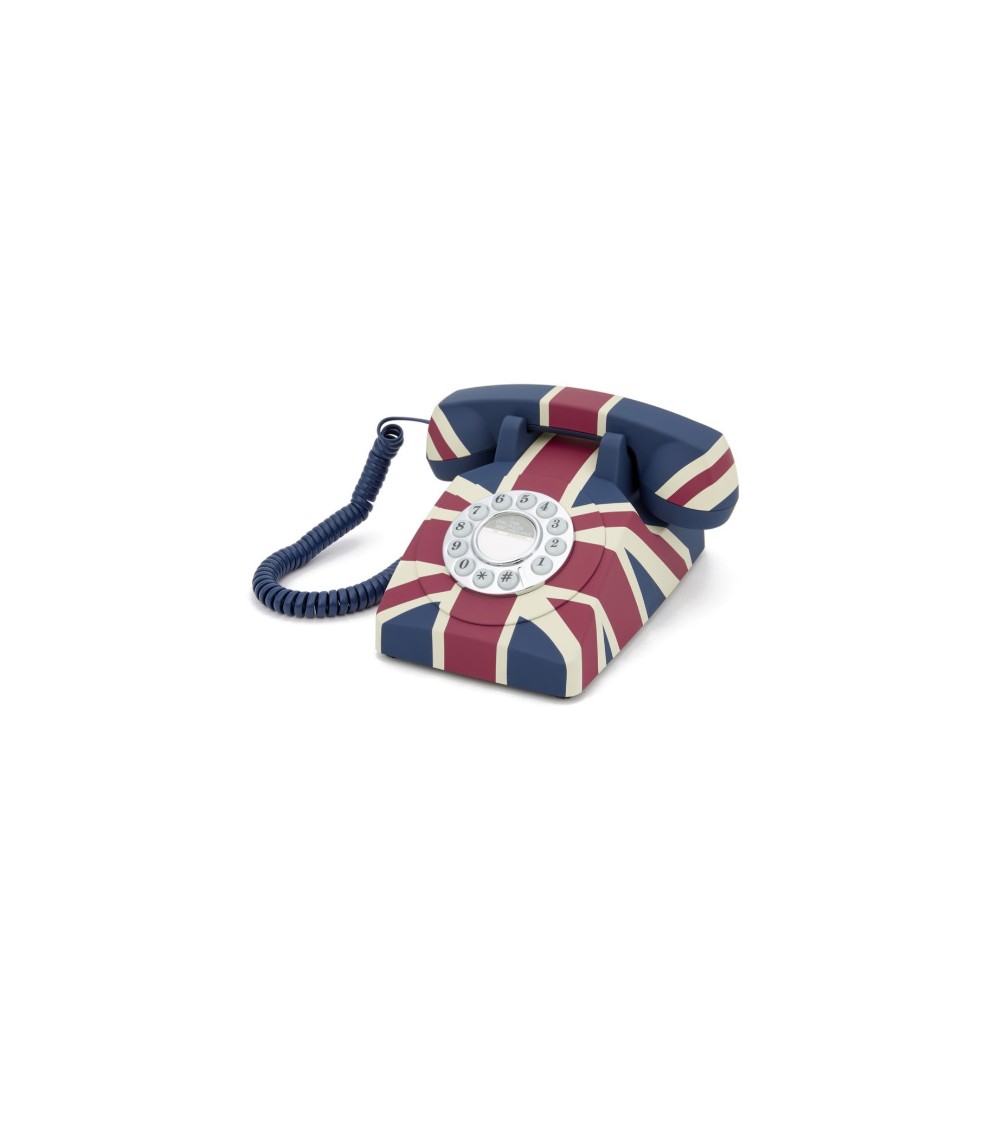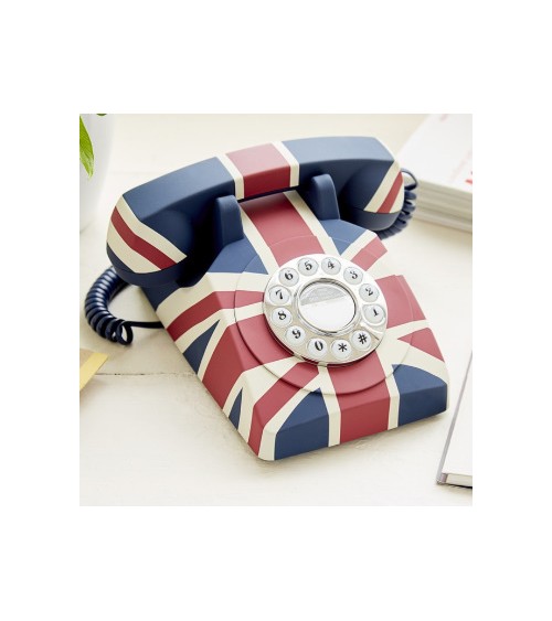 Replongez dans lambiance des années 60 avec ce téléphone filaire au charme irrésistible. Inspiré des modèles emblématiques dantan, il affiche fièrement les couleurs de lUnion Jack pour un look rétro et 100 % british. Avec son cadran à boutons rotatifs et son combiné classique, il allie nostalgie, design et fonctionnalité moderne.