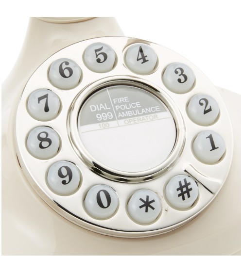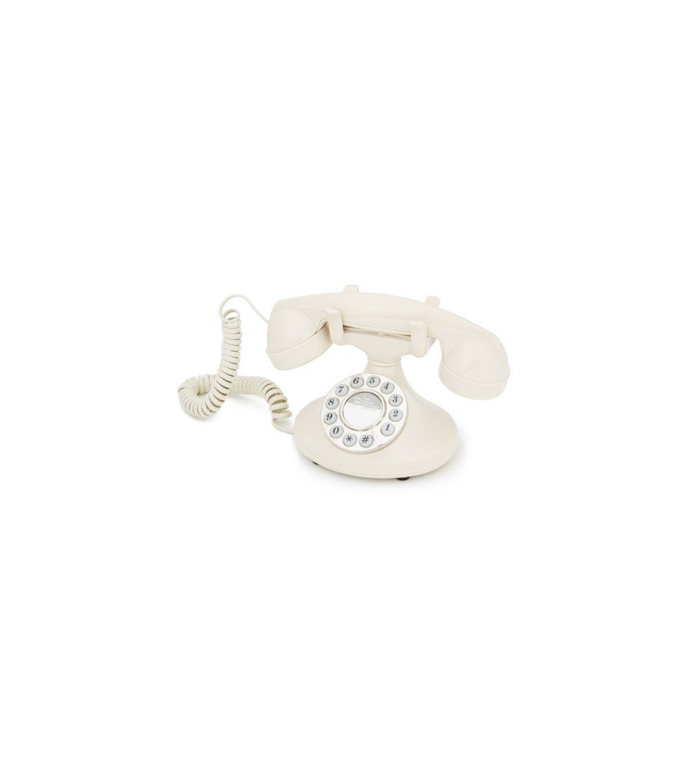 Ce téléphone filaire au design élégant des années 50 apporte une touche de raffinement rétro à votre intérieur. Avec sa silhouette iconique, son cadran circulaire à boutons et sa finition ivoire douce et lumineuse, il se transforme en véritable objet déco tout en restant parfaitement fonctionnel. À la croisée du passé et du présent, il séduit les amateurs de vintage comme les passionnés de design.