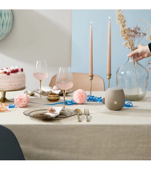 Connectez deux enceintes aJAZZ Qi pour une expérience musicale vibrante avec Stereo Play. Ou fredonnez pendant que vous êtes sous la douche - aJAZZ Qi est résistant à l'eau et conçu pour être utilisé dans la salle de bain. aJAZZ Qi peut également être rechargé sans fil grâce à l'un de nos chargeurs sans fil, WiCARGE. Le tissu de tous les haut-parleurs est composé à 98% de polyester recyclé provenant de Gabriel.