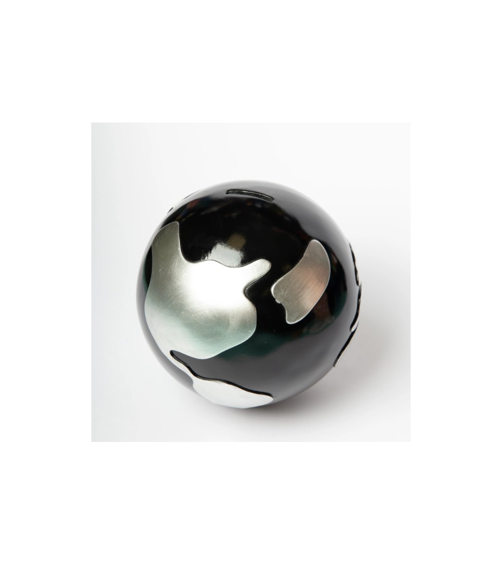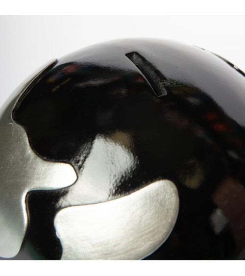 Faites voyager vos économies ! Cette tirelire design en forme de globe terrestre transforme chaque pièce déposée en promesse daventure. Avec son contraste élégant noir profond et continents métallisés, elle associe style contemporain et symbolique forte : celle dun monde à explorer ou à protéger.