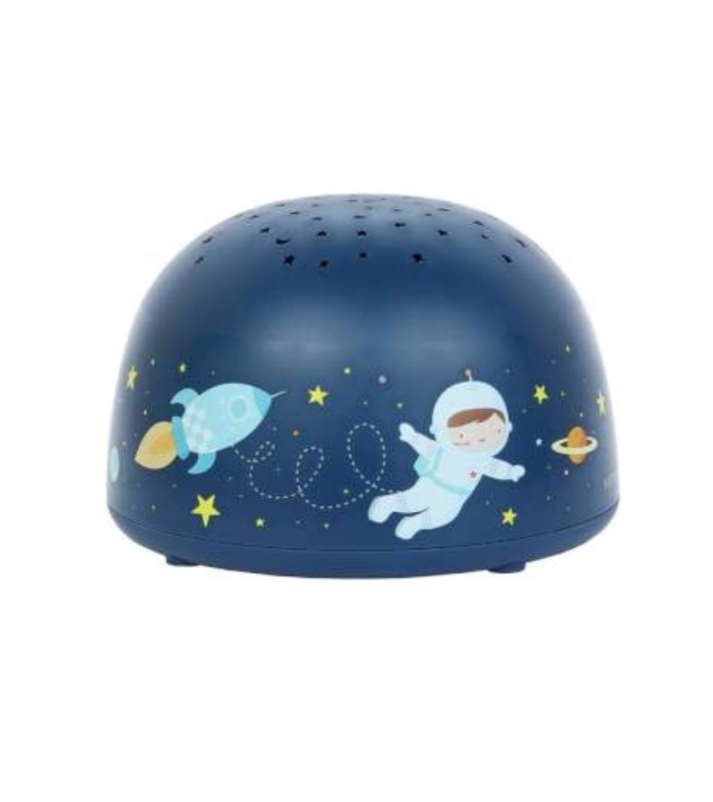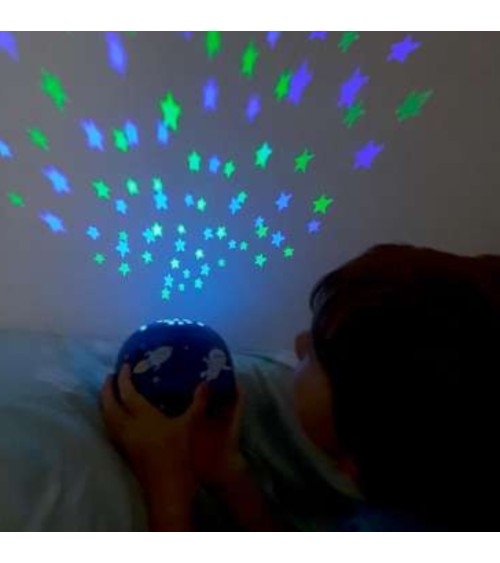 Le projecteur espace projette des étoiles sur les murs de la chambre. Différentes couleurs sont possibles : arc enciel, orange, vert ou bleu. Minuterie de 30 minutes.