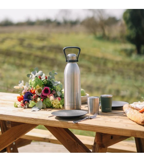 La bouteille isotherme grande contenance imaginée pour le partage. Facile à transporter grâce à sa poignée intégrée, elle s'emporte pour toutes les occasions, entre amis, en famille ou au travail.